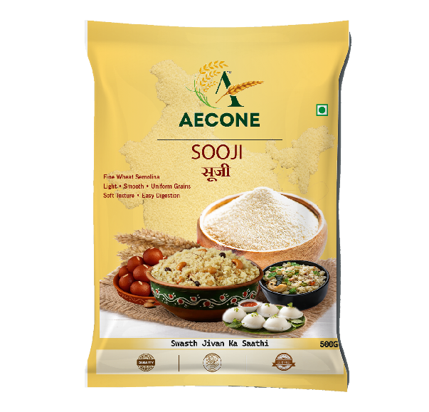 Aecone Sooji is prepared from premium wheat and milled into fine, uniform granules to ensure smooth texture and consistent performance. Its light nature makes it easy to digest and suitable for a wide range of recipes. This sooji is ideal for preparing dishes such as upma, halwa, idli, dosa, and other everyday meals that require even cooking and soft texture.